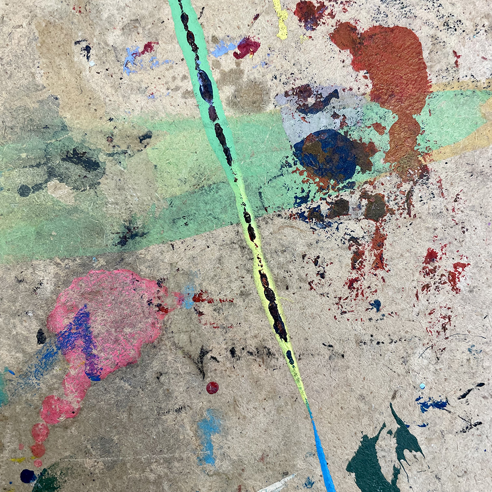 paint splattered on table top