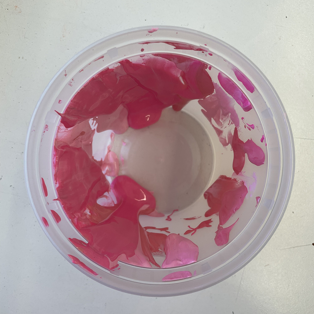 pink paint on water bowl